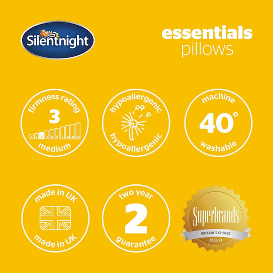 Silentnight Essentials Pillows 2 Pack - Soft Comfortable Soft Medium Support Pillows for Front, Stomach, Back and Side Sleepers - Hypoallergenic and Machine Washable - Pack of 2