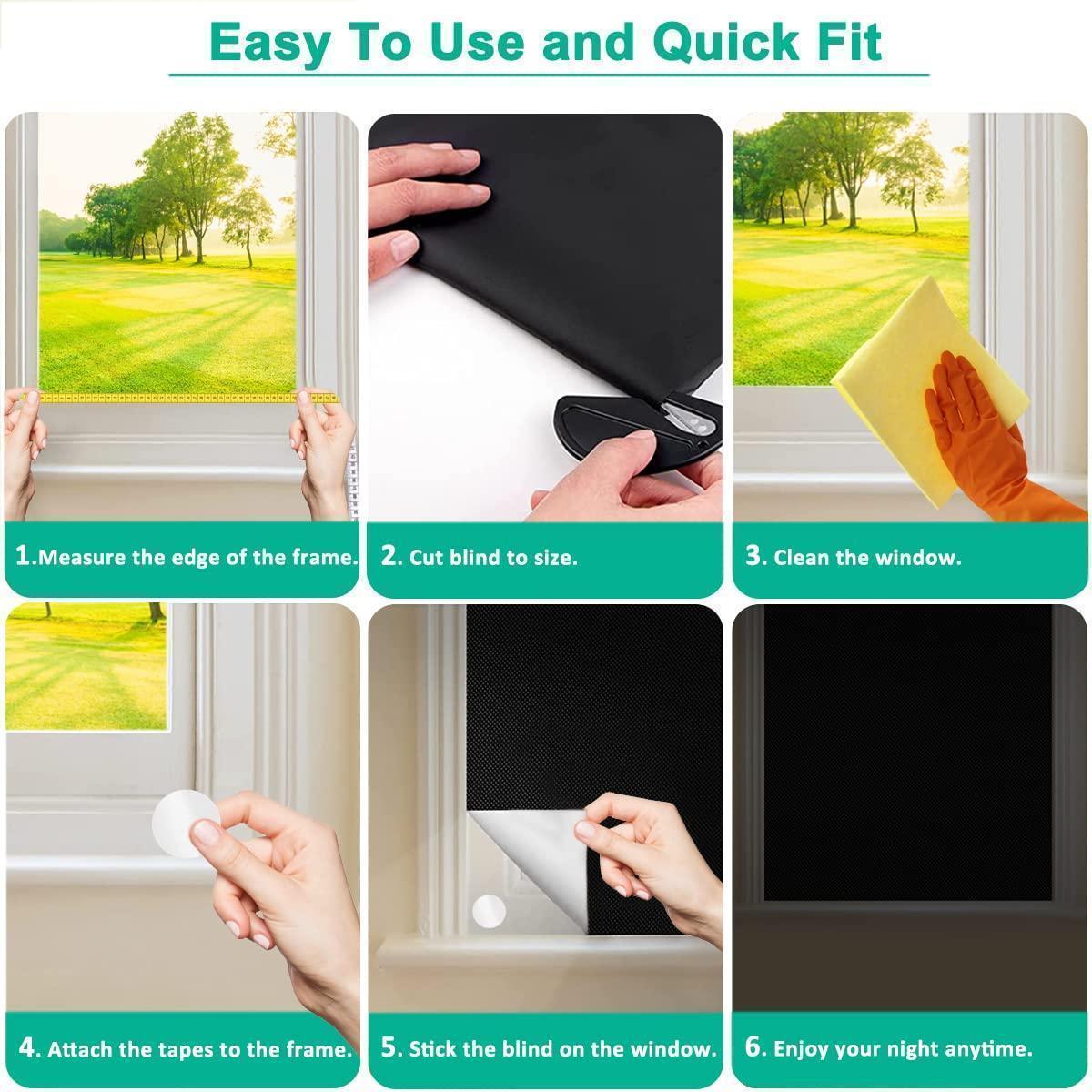 Draagbare 100% verduisterende jaloezie (145 x 250 cm) met nanotape - Zelfklevende verduisterende gordijnen voor ramen, slaapkamers, kinderkamers, reizen, campers en meer - Past op elk raamformaat of elke vorm