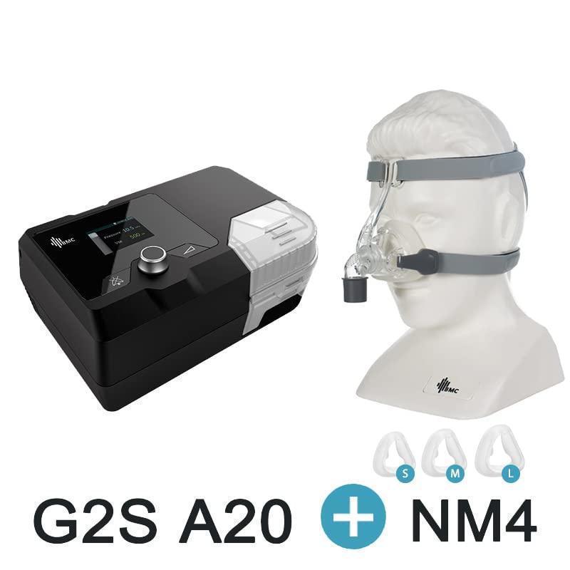 BMC G2S A20 Slaapventilator - Volledig automatisch anti-snurk apparaat met ingebouwde verwarmde luchtbevochtiger, geluidsreductie, nalevingsgegevens en volledige neusmaskerset