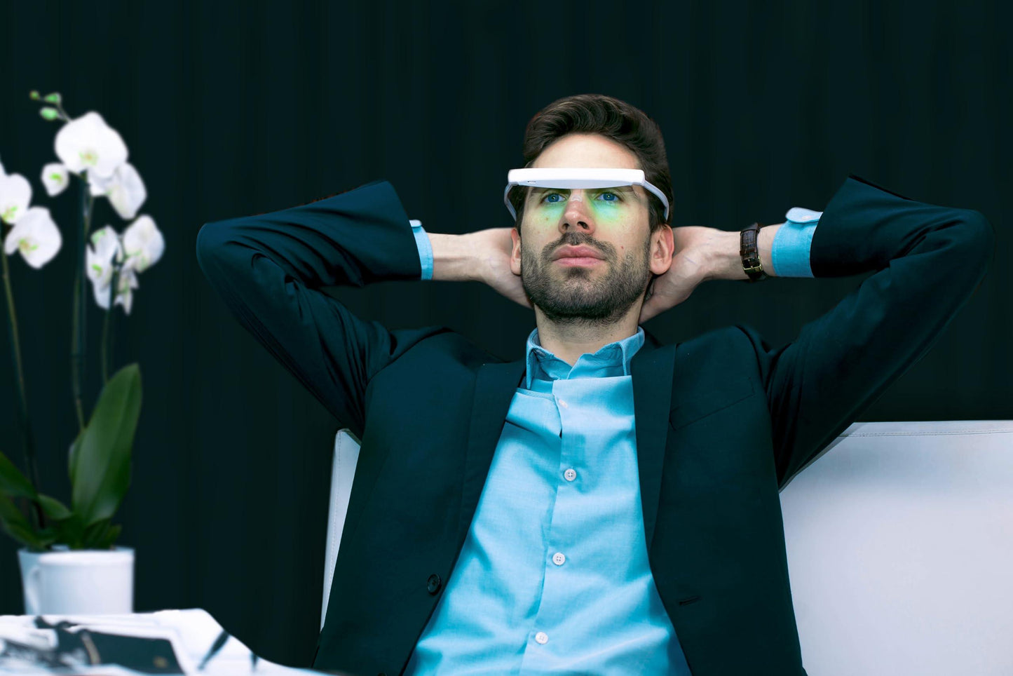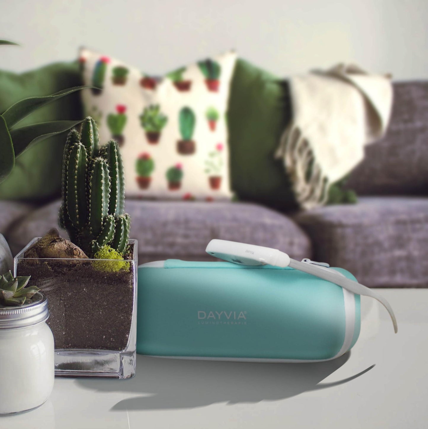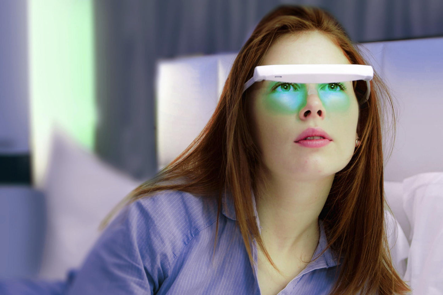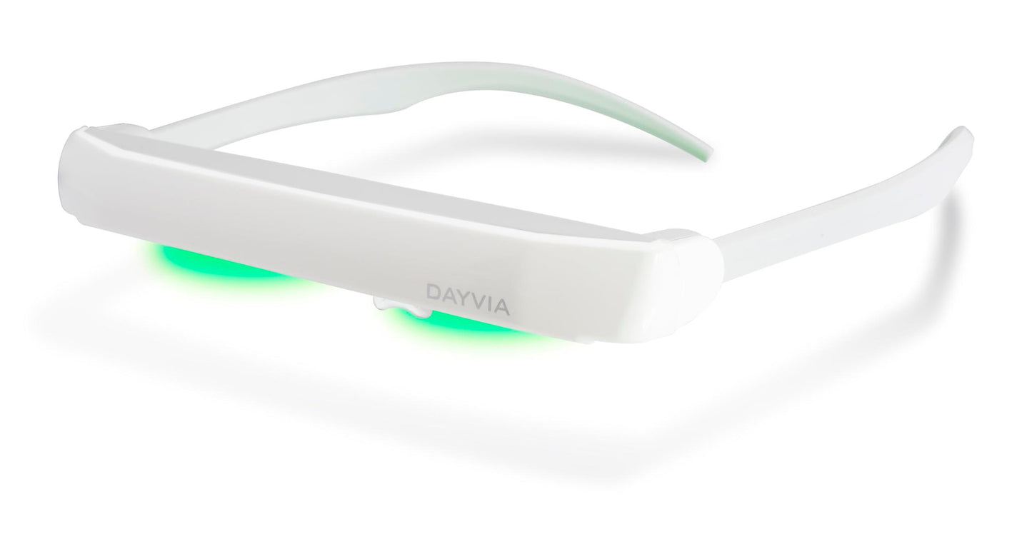 DAYVIA Lunettes de Luminothérapie LED SUNACTIV, Simulatie van de Lumière du Jour, 3 Niveaux d'Intensité Ajustables, Timer Integré, Blanc en Gris, Agréement CE Medical en Fabrication Française