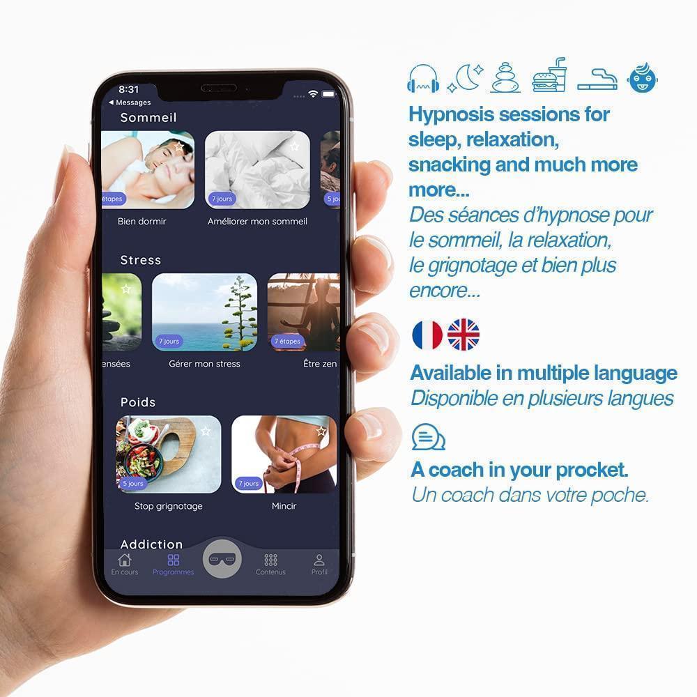 - 📱 TOEPASSING HYPNOS DÉDIÉE: luister naar compatibele audiosessies met het masker dat beschikbaar is via de applicatie Hypnos. De nieuwe contenus is een voorstel voor een regeling. Beschikbaar via IOS en Android.
