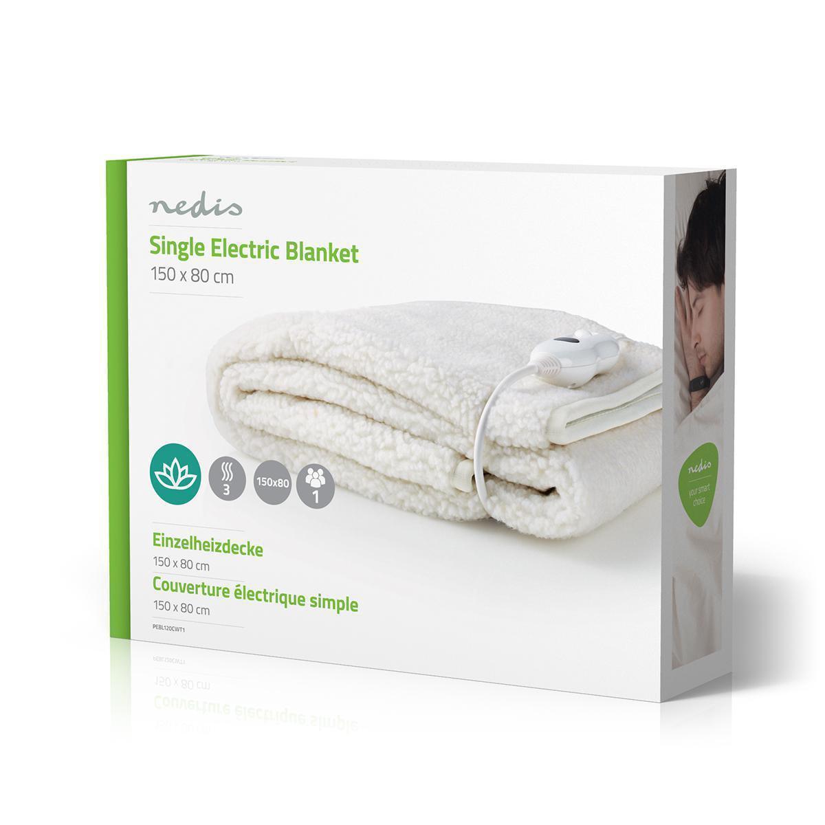 Deze Nedis elektrische verwarmde deken voor 1 persoon garandeert u het comfort van een voorverwarmd bed in de avond. Deze zachte eenpersoons onderdeken van 150 x 80 cm is gemaakt van synthetische wol en polyester en is eenvoudig onder de lakens te leggen om het bed voor te verwarmen. Deze veilige en hoogwaardige deken houdt u lekker warm bij koud weer. Deze deken is geschikt voor 1 persoon en is voorzien van een controller zodat u de temperatuur naar wens kunt instellen. De controller heeft drie warmtestanden en een indicatielampje. Omdat de controller afneembaar is, kan de deken worden gewassen.