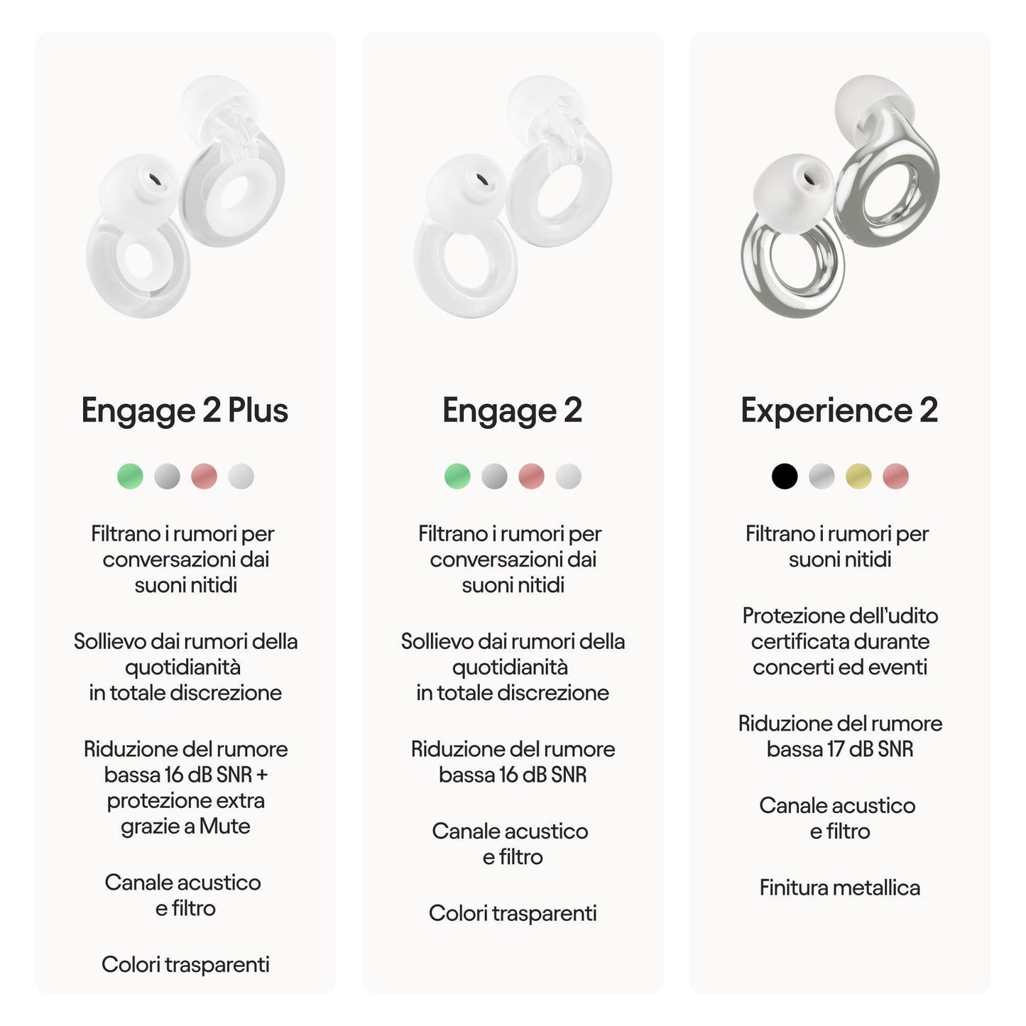 - MENO DISTRAZIONI, PIÙ CONNESSIONI: schrijf voor deze gelegenheid, gli Engage 2 Plus offrono, met discrezione, riparo dai quotidianità quotidianità per conversazioni dai suoni grazie ai 16 dB SNR di protection (+ 9 dB extra grazie all'accessorio Mute incluso nella Confezione).