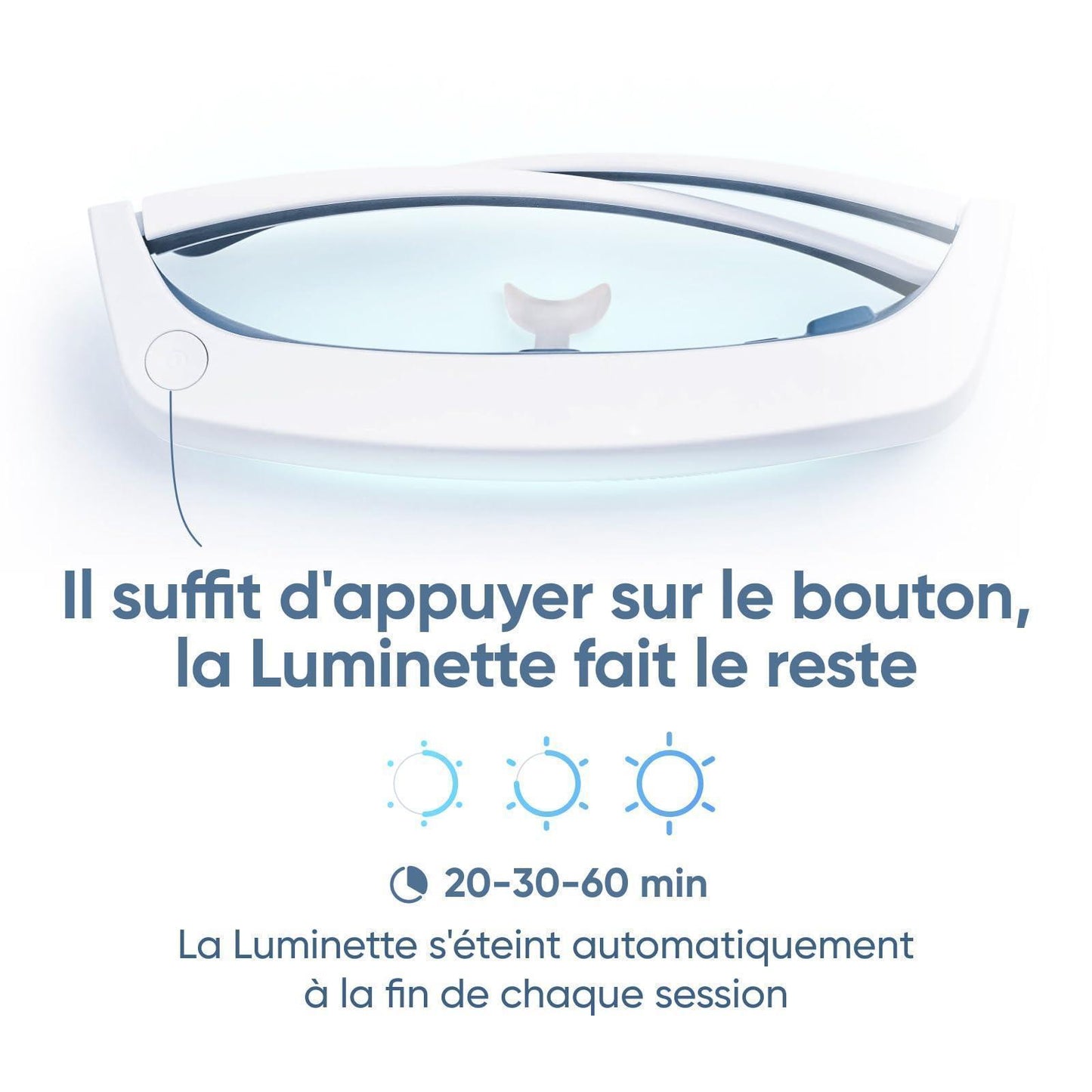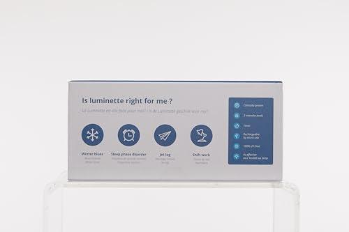 - GELIJKWAARDIG AAN EEN 10.000 LUX LAMP: Het uitgestraalde licht is een blauwverrijkt wit licht. Het wordt geleverd met 3 intensiteiten (500, 1.000 en 1.500 lux). Een onafhankelijke klinische proef heeft aangetoond dat Luminette net zo voordelig is als een 10.000 lux lamp