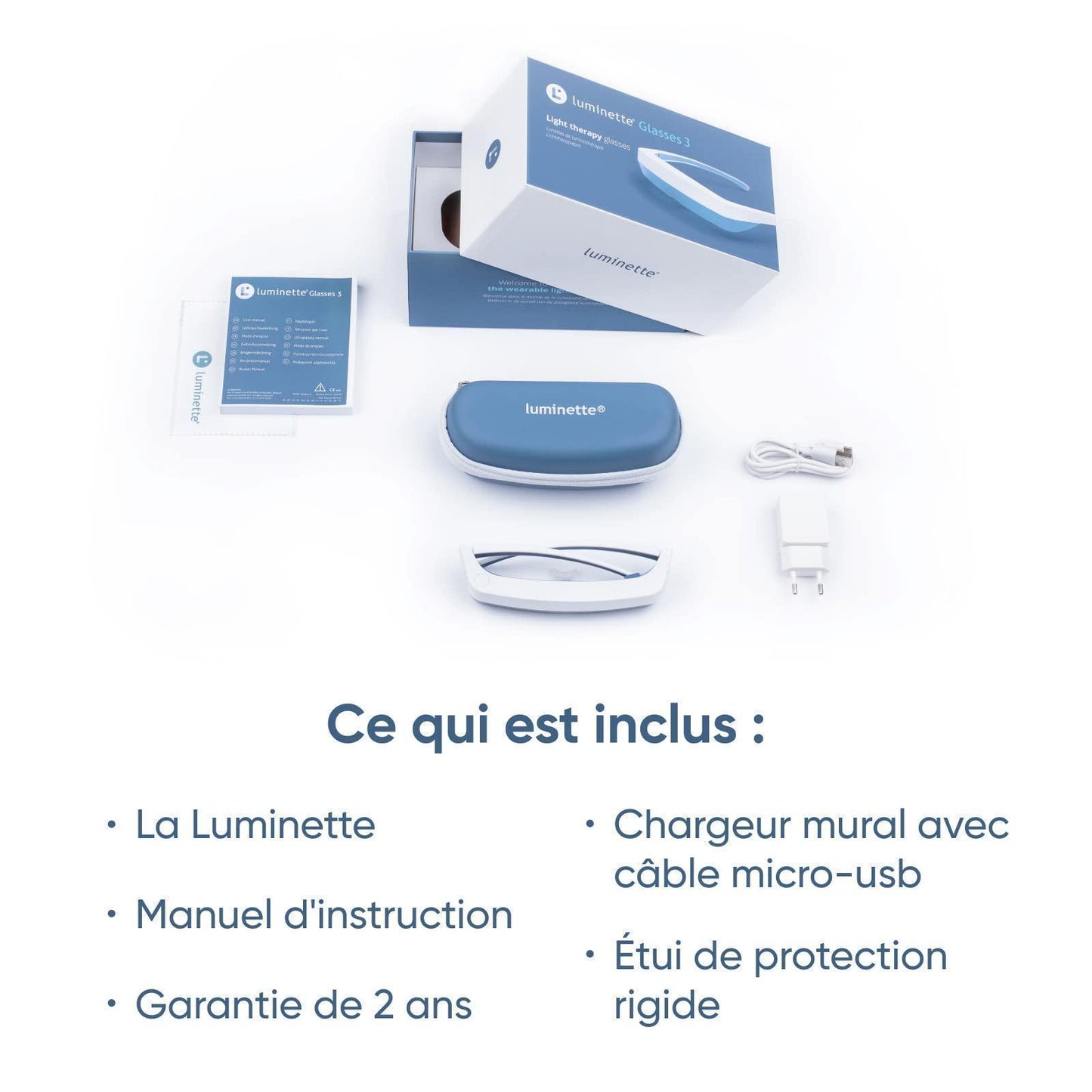 Details: Luminette Glasses 3 is de derde generatie van een draagbare en lichtgewicht (slechts 1,8 oz.) lichttherapiebril, waarmee u uw activiteiten kunt uitvoeren en tegelijkertijd de ideale lichtblootstelling krijgt. U hoeft niet langer 30 minuten voor een omslachtige lichttherapielamp te zitten, maar u kunt uw dagelijkse routine voortzetten terwijl u geniet van de voordelen van het licht. Verbeter uw slaap, verhoog uw energieniveau en minimaliseer jetlag. De Luminette is klinisch bewezen om uw humeur en energie op natuurlijke wijze te verbeteren en winterblues te bestrijden in slechts 20 minuten per dag. Het helpt ook om uw biologische klok te reguleren en synchroon te blijven met uw natuurlijke ritmes. Draagbaar en oplaadbaar, voorzien van een zakformaat ontwerp, een reiskoffer en een compacte oplader, de Luminette is eenvoudig te gebruiken, eenvoudig op te bergen en eenvoudig mee te nemen als u op reis gaat. De LED's kunnen 20 minuten per dag gedurende 50 jaar worden gebruikt zonder aan efficiëntie in te boeten. Ontworpen om schittering te minimaliseren en comfort te maximaliseren Luminette is speciaal ontworpen om uw gezichtsveld vrij te houden en de effectiviteit van het licht dat de fotoreceptoren in de ogen bereikt te maximaliseren. Veilig in gebruik Luminette wordt sinds 2006 dagelijks door 70.000 gebruikers gebruikt zonder enig probleem. De Luminette is geclassificeerd als een risicoloos product volgens de norm IEC 61471 over de fotobiologische veiligheid van de LED.