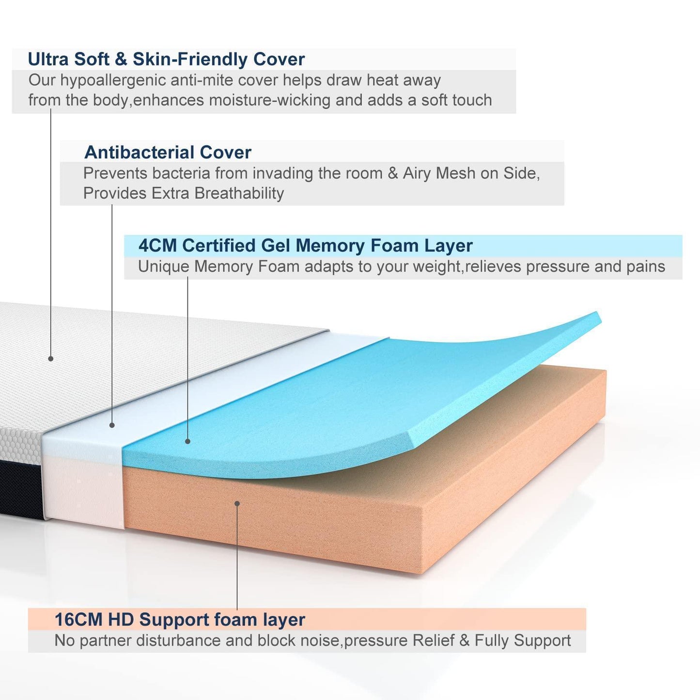 Molblly Dubbel Matras 8 INCH Memory Foam Matras Ademend Matras Medium Stevig met Zachte Stof Brandwerende Barrière Huidvriendelijk Duurzaam 4f6 Tweepersoonsbed Matras 135x190x20cm