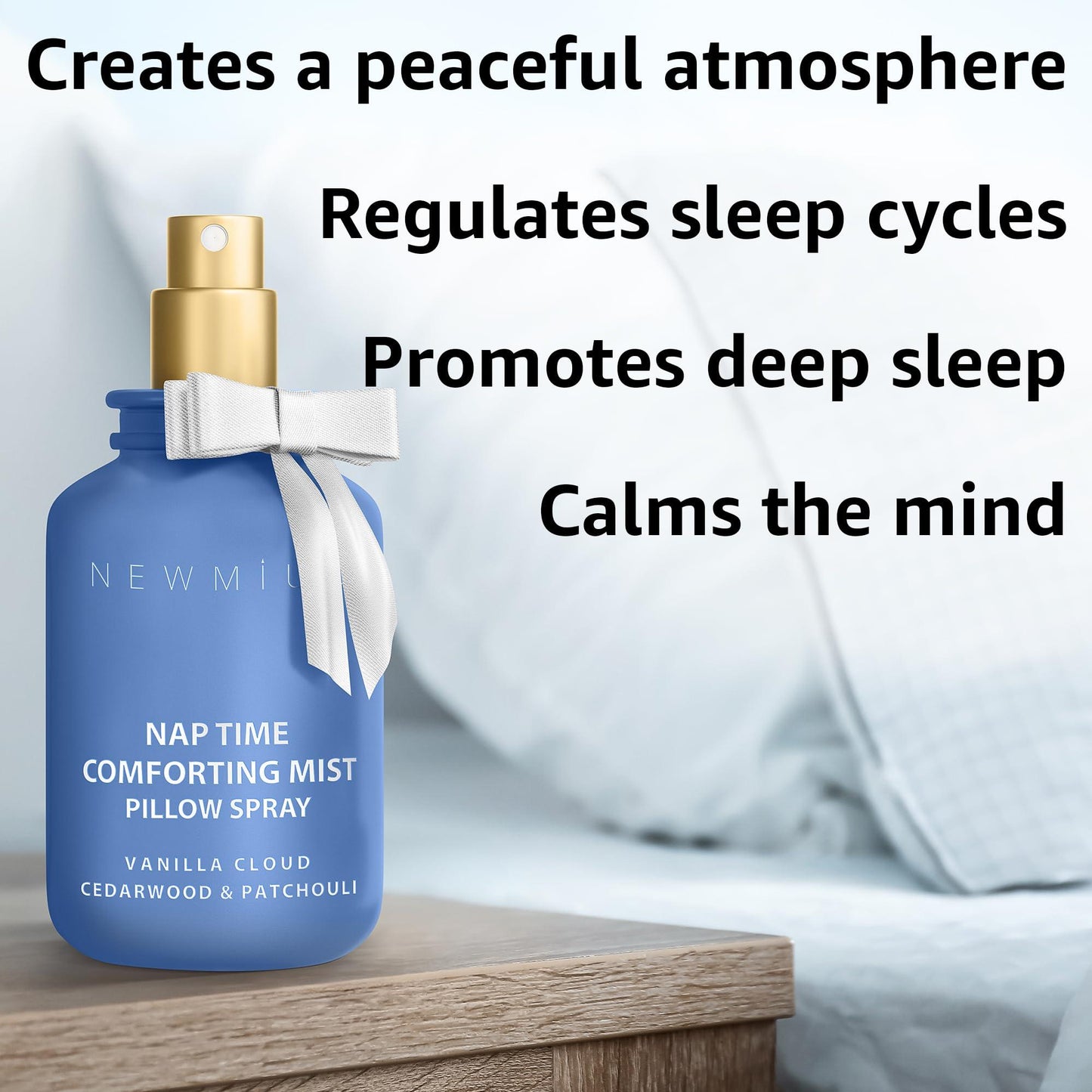 Nap Time Pillow Spray - Vanille Cederhout Essentiële Oliën Natuurlijk - Snelwerkende Aromatherapie Mist voor Rustgevende Slaap Ontspanning Kalmerende Stressverlichting - Bedtijd & Douche Spray Luxe Zelfzorg Cadeau