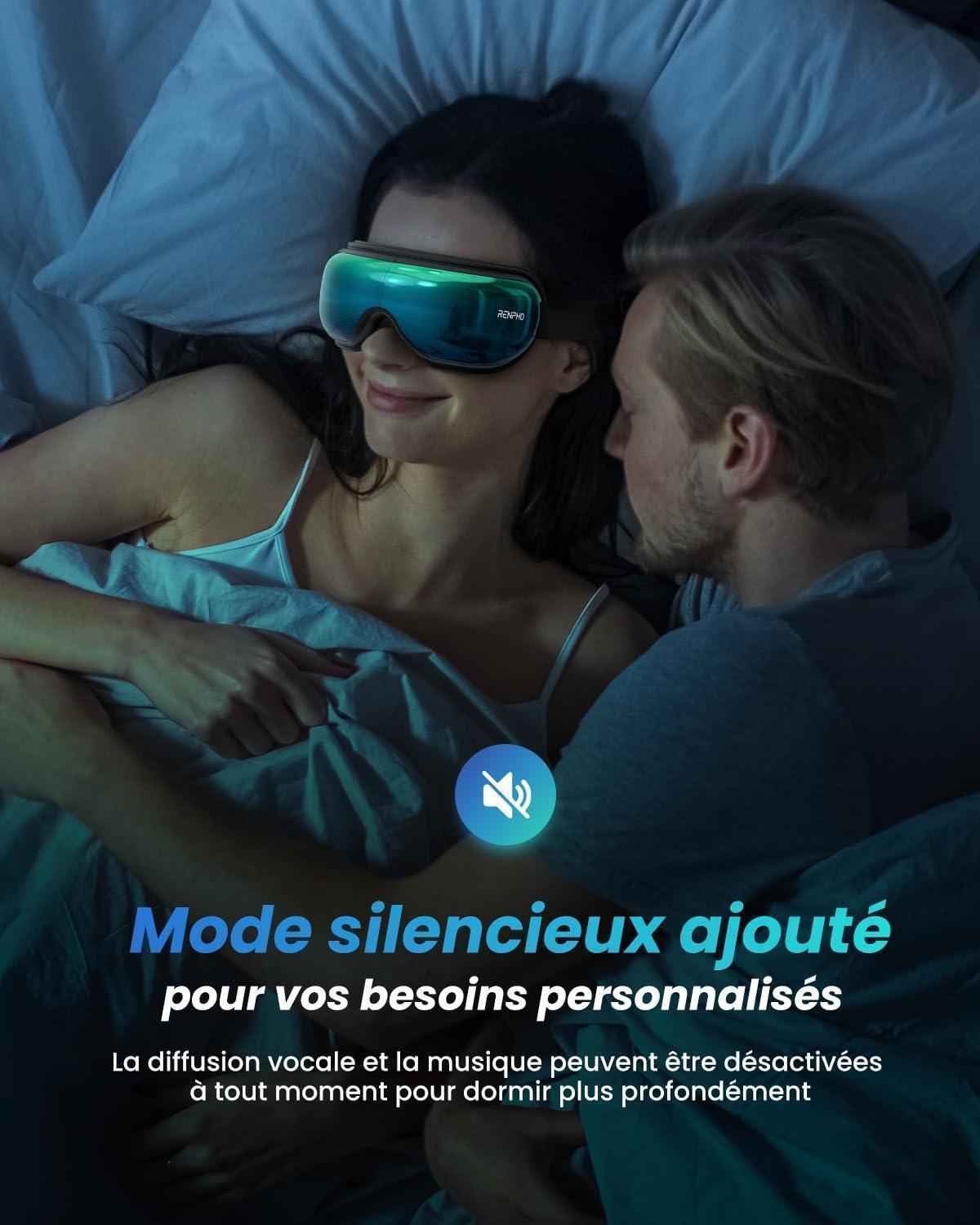 - Verminder de oogvermoeidheid en het beste van het lichaam - De oculaire masseur RENPHO neemt een oscillerende druk en een massage door het percussieritme aan, waardoor het auto-effect van het leven plus briljant en elastisch kan worden weergegeven. Het masker voor uw chaufferende RENPHO met muziek via Bluetooth kan een rustgevend effect hebben. Portez-le hanger 15 minuten avant d'aller vous coucher tous les soirs, vous serez totale détendu en profiterez d'un meilleur rêve doux.