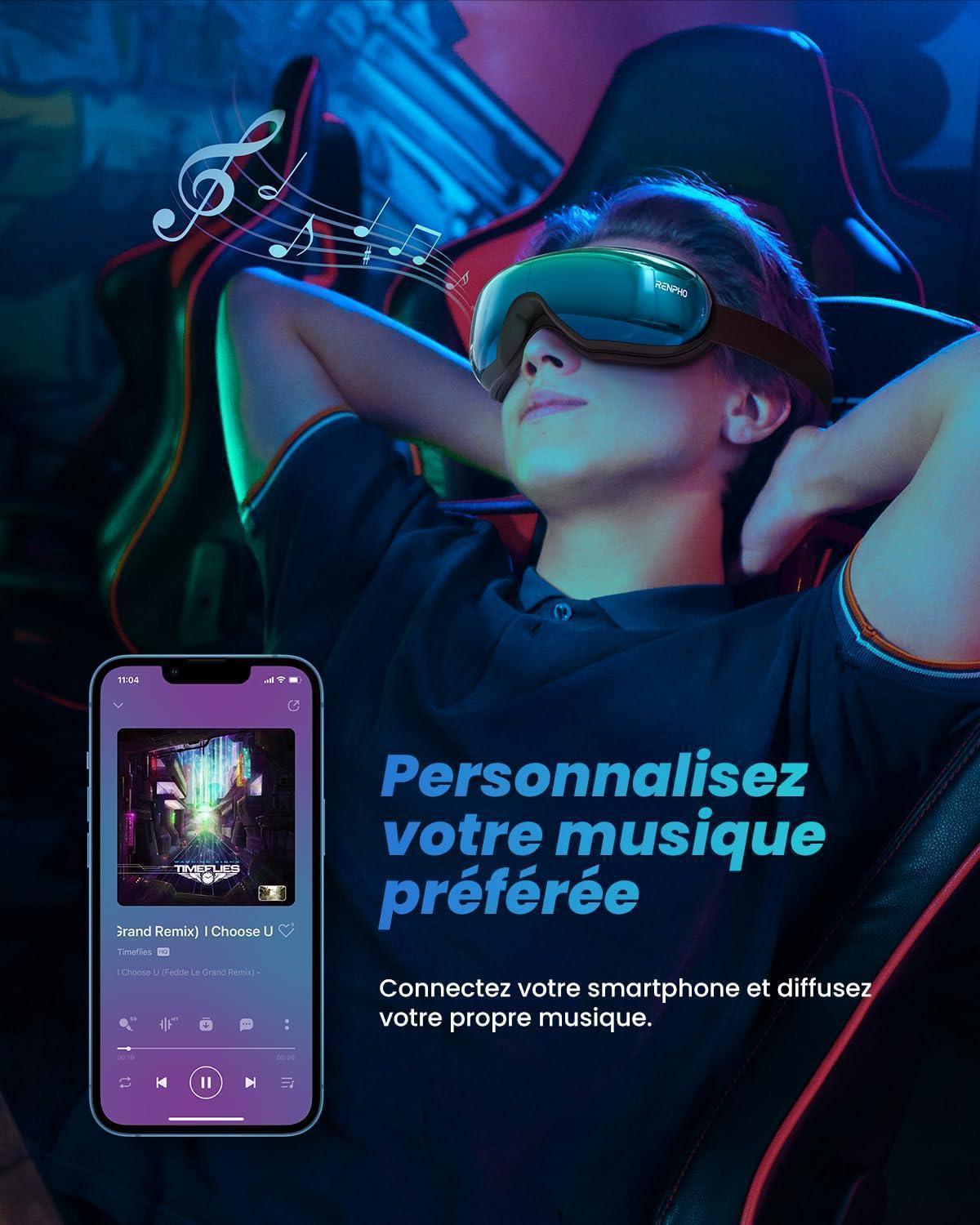 RENPHO Eyeris 1 - Masseur voor de yeux met chaleur, masseur chauffant, masker voor de yeux met muziek Bluetooth, zorgt voor een vermindering van vermoeidheid en verbetert het gevoel van vermoeidheid