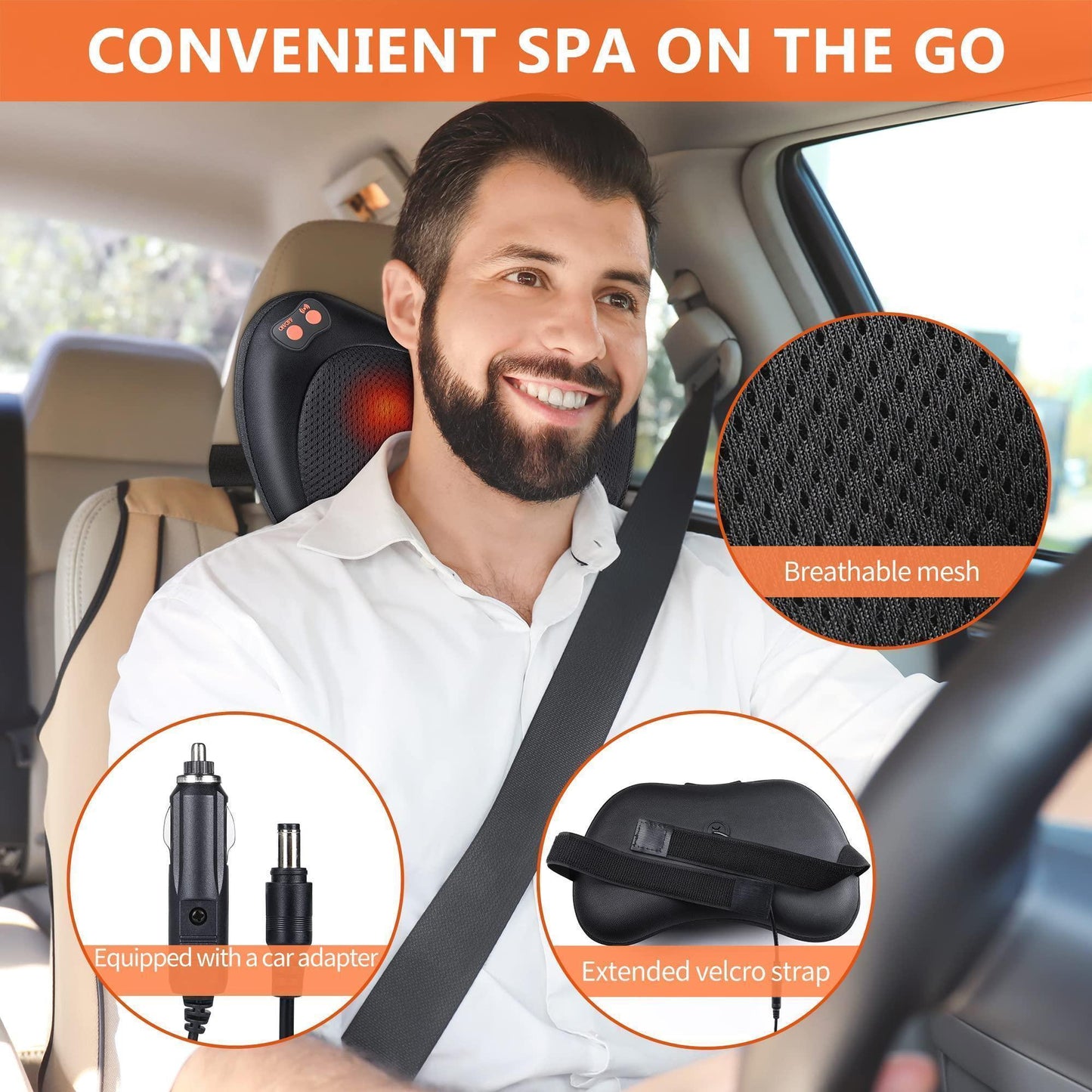 - Expérience de massage et temps de massage sûr et raisonnable. Bande élastique réglable : il y a une sangle élastique multifonction réglable à l'arrière du coussin de massage, qui vous permet de fixer le coussin de massage shiatsu au dos de la chaise de bureau, de relâcher vos mains et de masser facilement