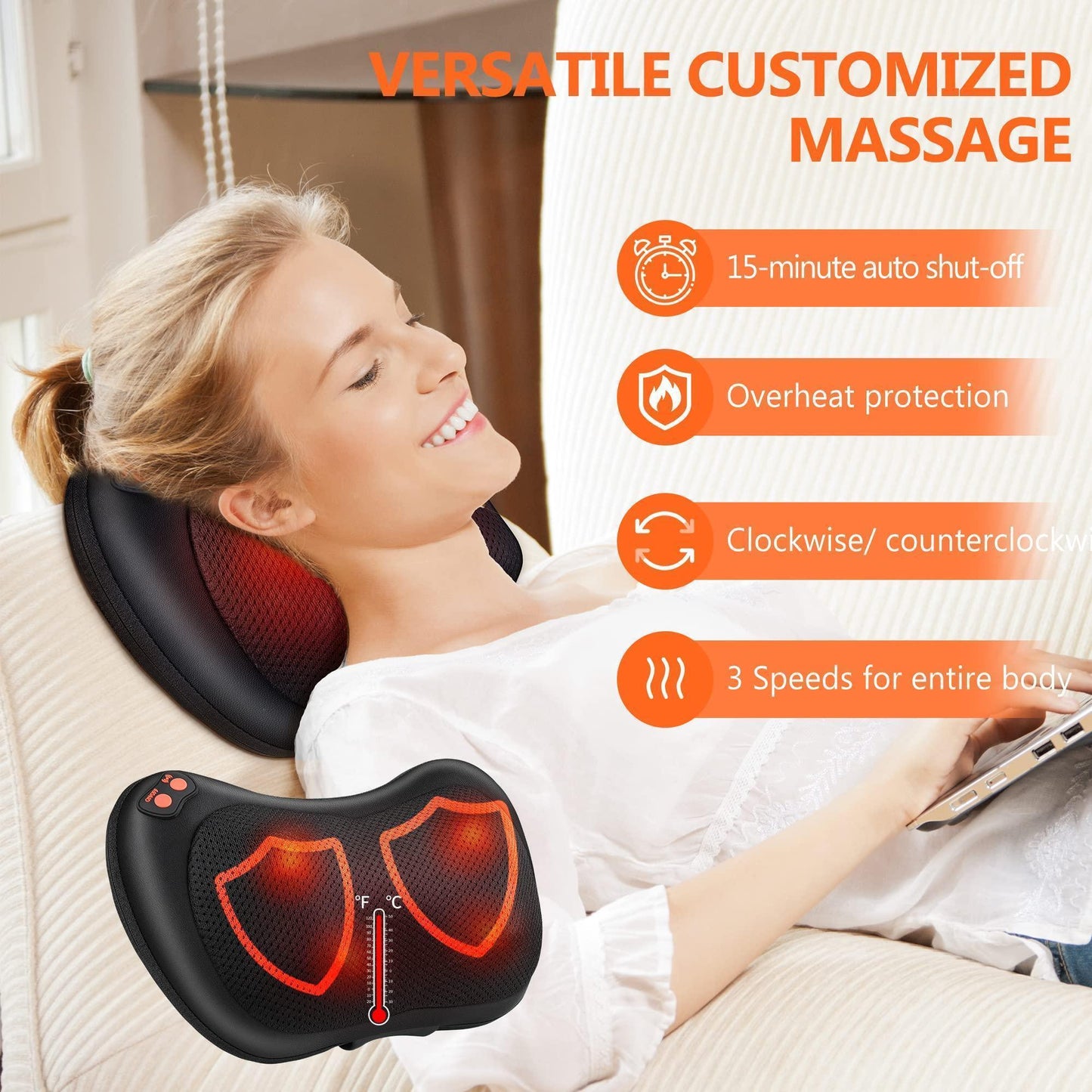 - Polyvalent & Ergonomique: Ce coussin de massage simule les techniques de massage des masseurs et offre l'ultime expérience de massage réel. Il peut frapper votre dos, votre cou, vos bras, votre taille, vos cuisses, vos mollets et d'autres parties du corps