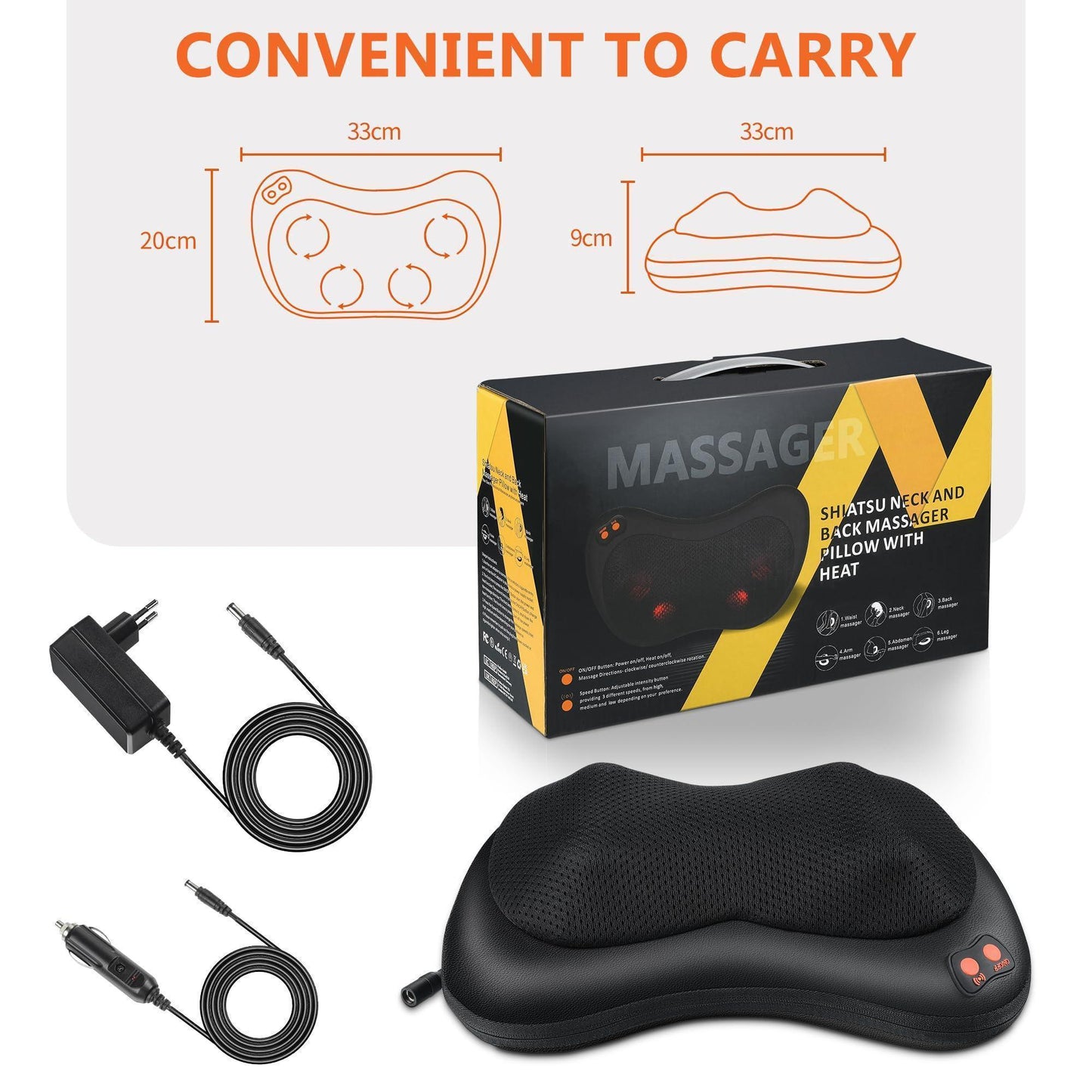 - Meilleur cadeau pour vos proches : le masseur d'épaule shiatsu est livré avec un adaptateur secteur (100-240 V) et un adaptateur CC (12 V CC). Profitez simplement d'un massage confortable à la maison, au bureau, au gymnase avec vos amis et votre famille. C'est un excellent choix pour Thanksgiving, Noël, la fête des mères, la fête des pères, un anniversaire ou toute autre occasion spéciale