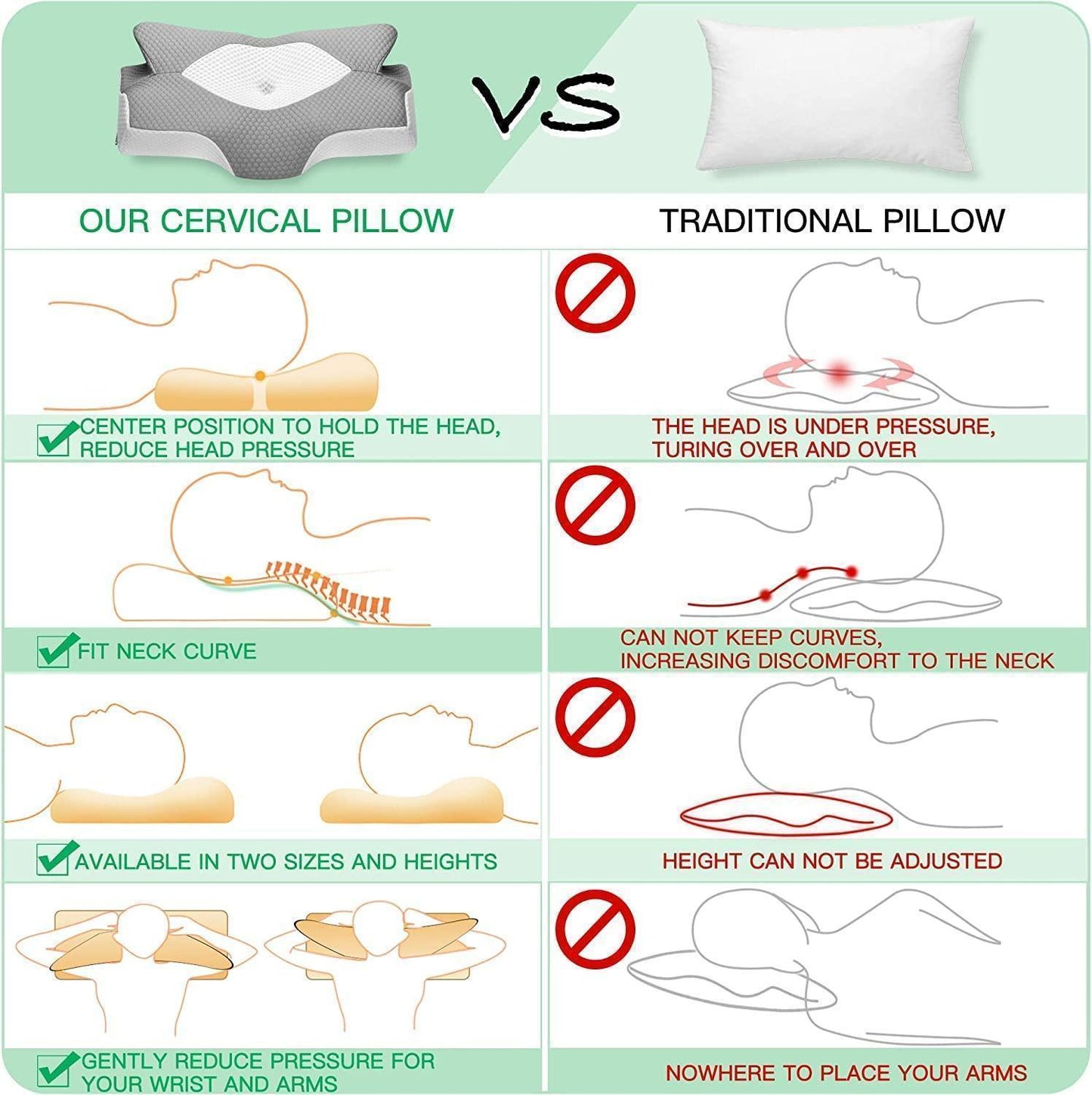 The cervical neck pillow can support your neck in the neutral aligned position and lifts your head to the proper height while you sleep on your back or side.It is possible for you to experience some discomfort during the FIRST TWO WEEKS while your body is trying to adjust to the correct position. Please be patient and give yourself an adaptation cycle.