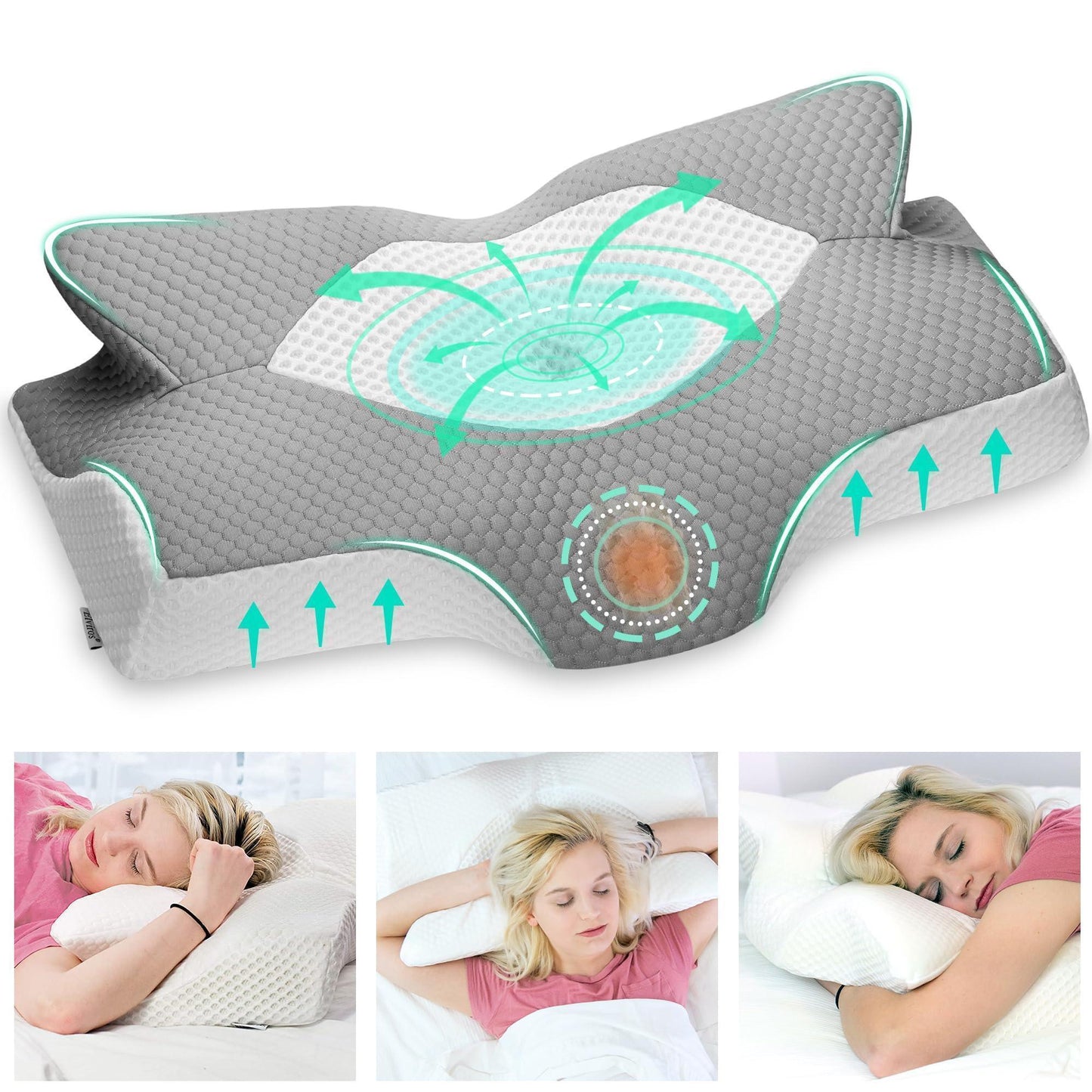 - REDUCE NECK & BACK PAIN: Proven contour design exactly supports and aligns your head, neck, shoulder, and back. The slope keeps your head from rolling out of a stable position. Bringing a reduction of stress in the cervical vertebra and spine. Improving sleep and relieving neck and shoulder pain, discomfort rejuvenating your body