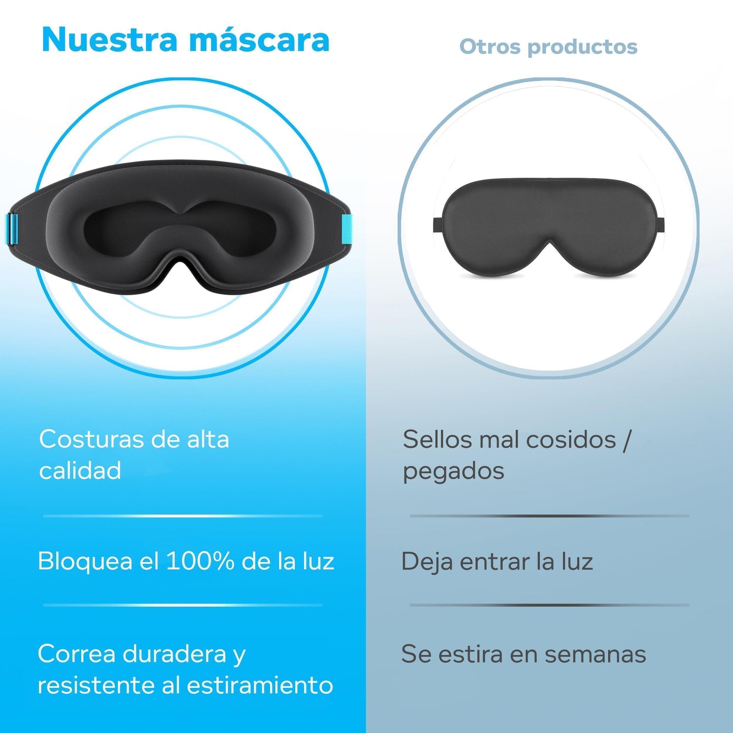 - DISEÑO PREMIUM – Nuestro antifaz negro para mujeres y hombres utiliza relleno de espuma viscoelástica de primera calidad y tela supersuave y transpirable para permitir el flujo de aire alrededor de los ojos. ¡Cuando lo pruebes tendrás horas del mejor sueño reparador de tu vida!