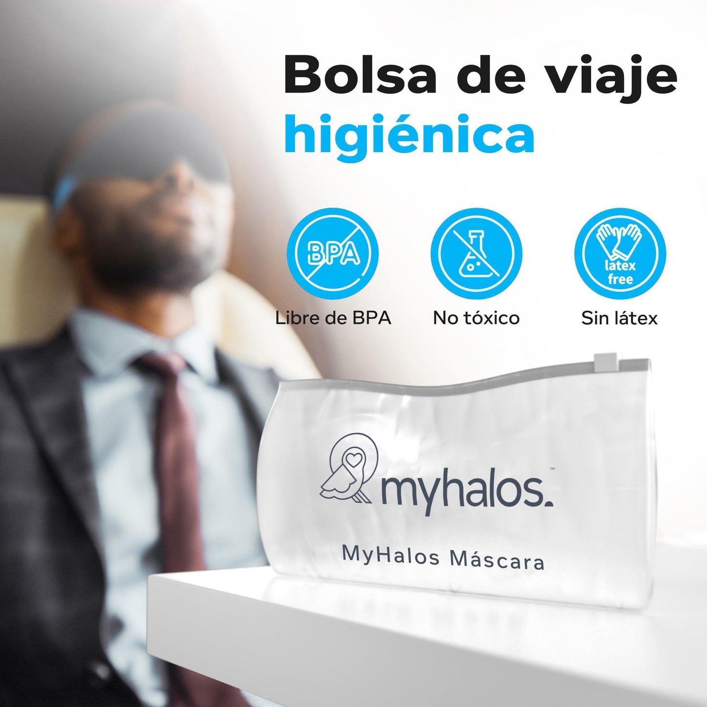- PARA DESCANSAR CUANDO VIAJES – Los antifaces Halo Mask son excelentes accesorios de viaje. Son ideales como antifaz de viaje para llevar en el avión, el autobús, o en cualquier viaje largo. Nuestra máscara antifaz incluye una bolsa higiénica para que puedas llevarla vayas donde vayas.